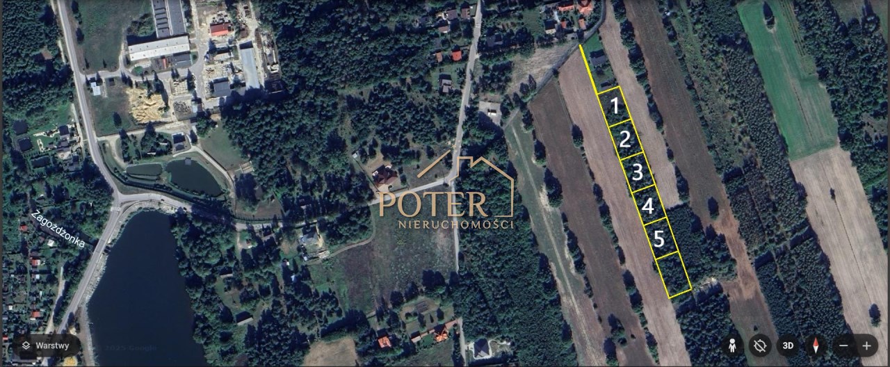 Wymiary każdej działki: ok. 20 m x 49 m (ok. 980 m² każda)
