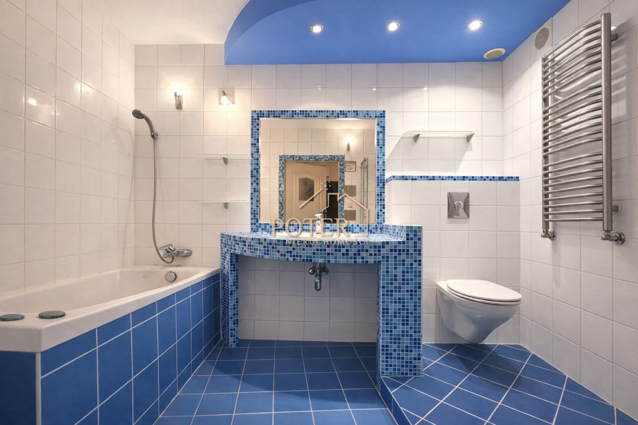 - dużej łazienki z kabiną prysznicową i wanną (ok. 6,7 m2)