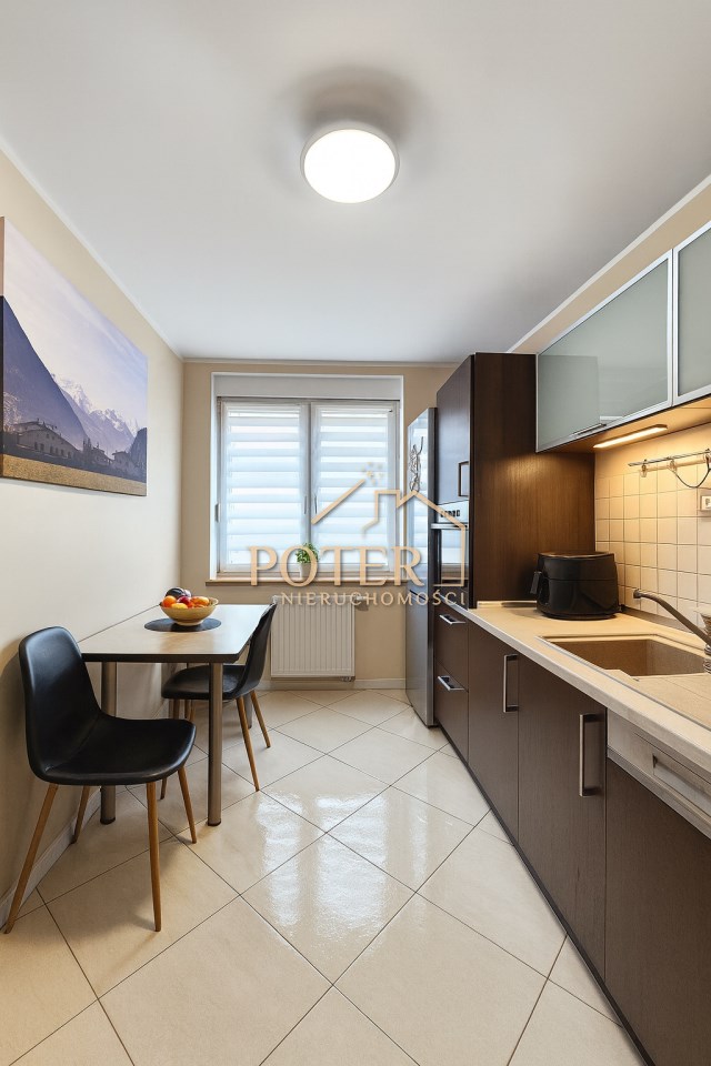 Kunia umeblowana i wyposażona w sprzęt AGD (zmywarka, okap, lodówka, piekarnik, płyta elektryczna).