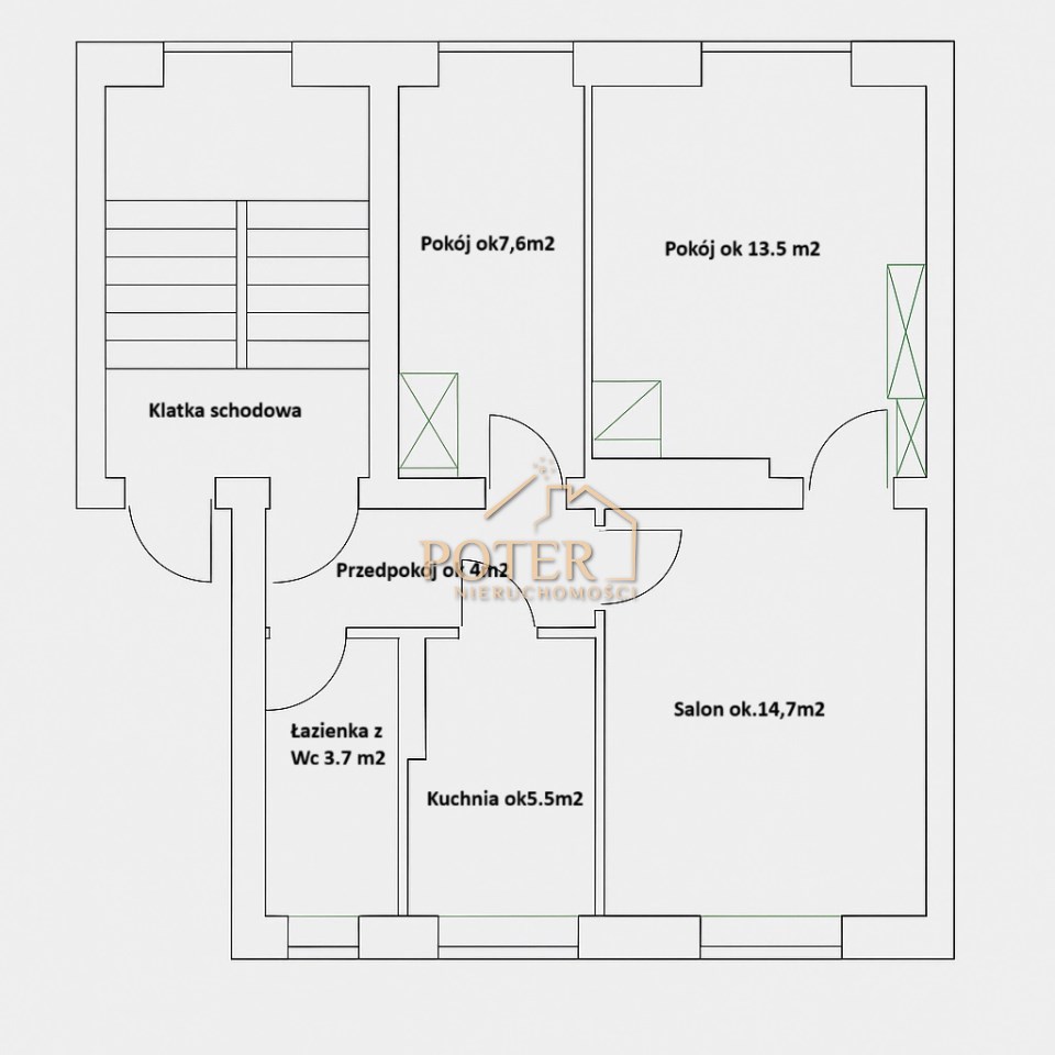 - pokoju (ok. 13,5 m2)