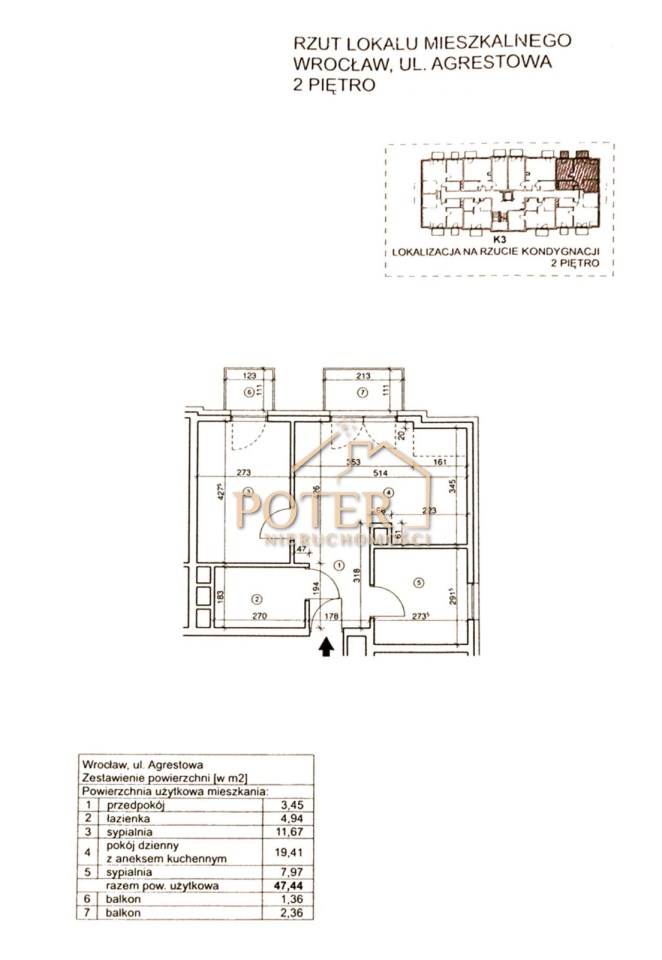 Na sprzedaż bardzo ładne i komfortowe 3-pokojowe mieszkanie o powierzchni 47,44 m2 z 2 balkonami na 2 piętrze 3-piętrowego bloku z windą z 2012 r. na Krzykach, Partynice/Ołtaszyn przy ul. Agrestowej