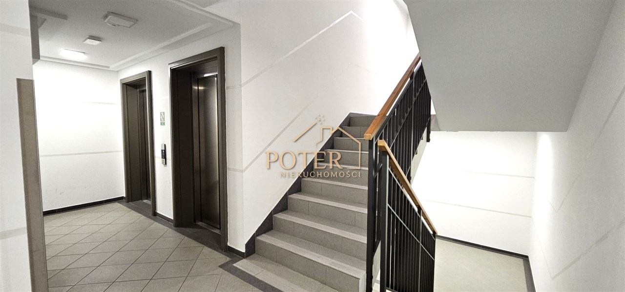 Klatka schodowa czysta i zadbana, z monitoringiem.